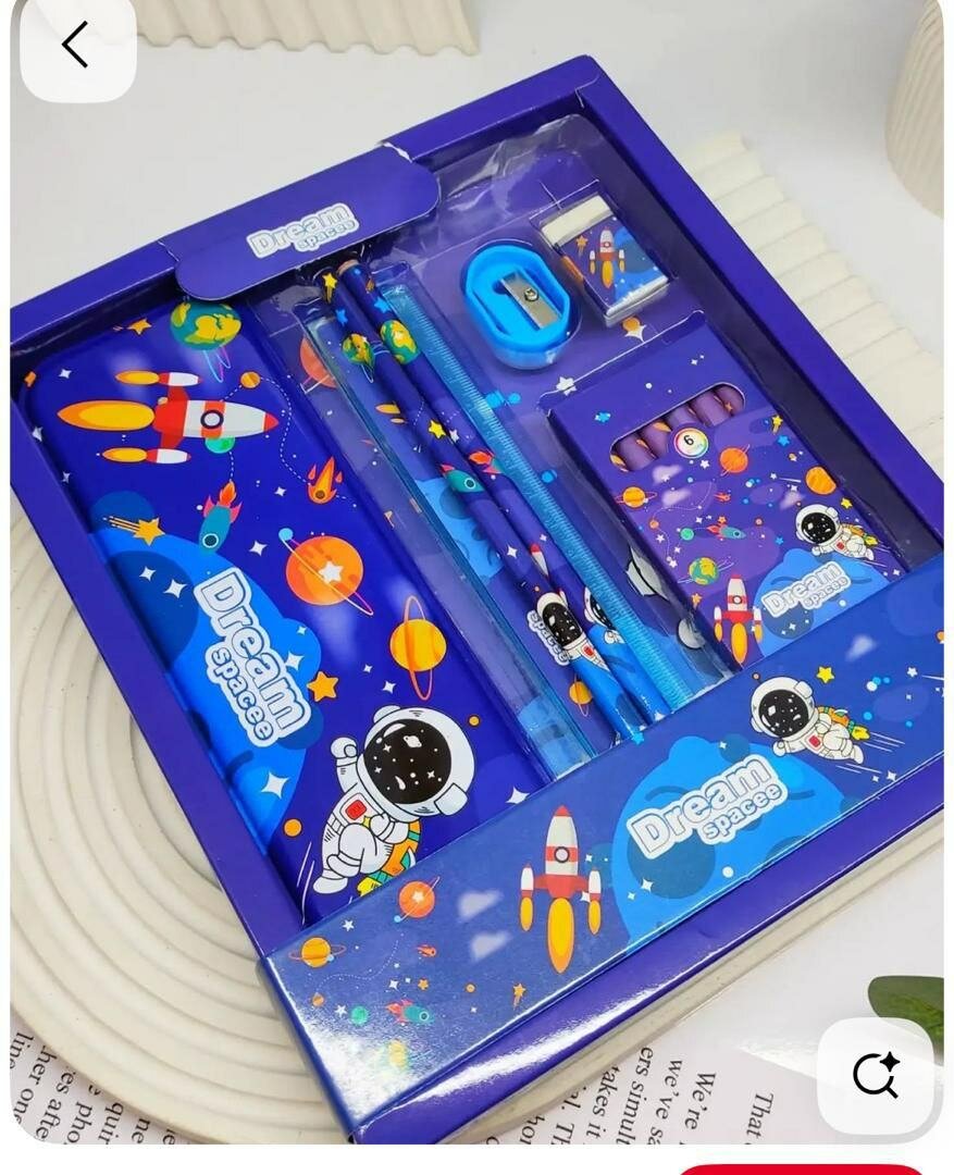 Ce kit de papeterie sur le thème de l'espace ravira les jeunes explorateurs. Comprend stylos, crayons, gomme, règle et taille-crayon, parfait pour l'école ou à la maison. Un cadeau idéal pour stimuler la créativité des enfants.