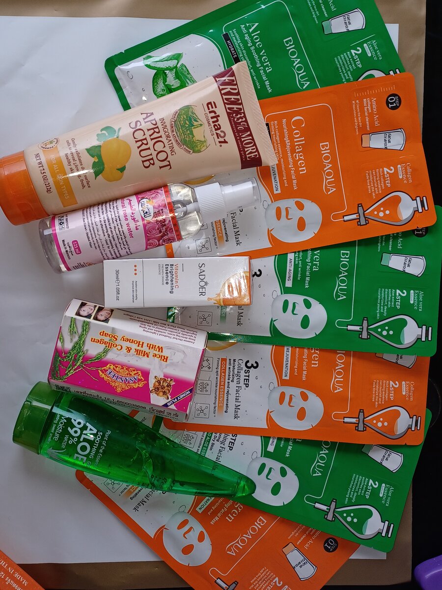 Découvrez notre set complet de soins visage pour une hydratation optimale. Comprend masques de Bioaqua, gommage d'abricot, eau de rose, serum à la vitamine c et gel d'aloe vera. Idéal pour une peau nourrie et éclatante, adapté à tous types de peau. Profitez de ce trio pour un rituel de beauté quotidien.