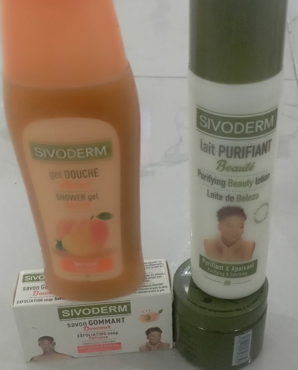 -1 gel gommant -1lait purifiant -1 crème de soin -1 savon gommant de 120g( petit)