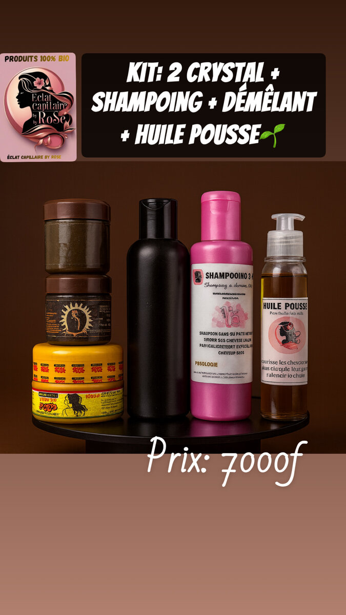 Transformez vos cheveux avec notre Kit Soin Cheveux: shampoing, démêlant, huile pousse et 2 cristaux. Idéal pour des cheveux brillants, forts et en bonne santé. Parfait pour tous types de cheveux.