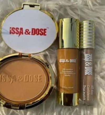Obtenez un teint éclatant avec le kit Issa & Dose. Comprend une poudre compacte, un fond de teint liquide et un correcteur crème. Parfait pour unifier et illuminer la peau. Idéal pour toutes les occasions.