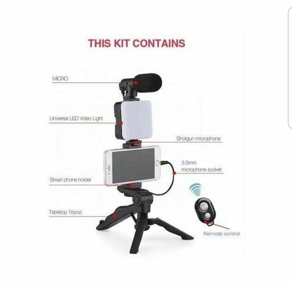 Améliorez votre contenu avec notre Kit Vlogging Universel pour smartphone. Comprend un trépied robuste, une lumière LED, un microphone directionnel et un support de téléphone. Capturez des vidéos professionnelles en toute simplicité, idéal pour vloggers et créateurs de contenu. Soyez prêt à filmer n'importe où, à tout moment !