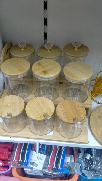 Бамбуковая подставка и стеклянные баночки для хранения сыпучих продуктов и не только Чай, кофе, сахар, специи соусы.