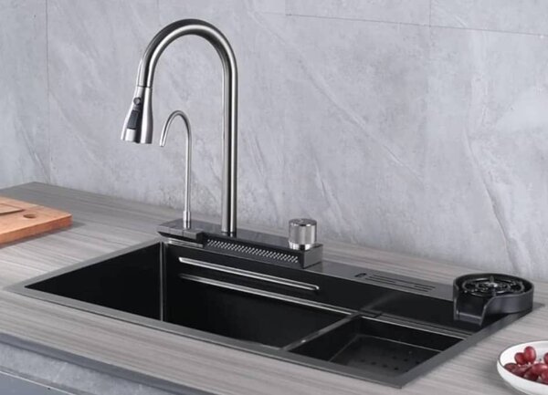 Black & Silver Kitchen Cabinet Sink With Pullout Faucet