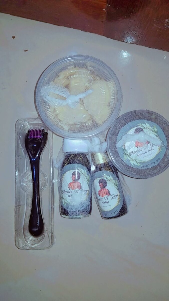 Il comprend : _Une Pommade dosée _Un sérum spécial _Une huile dosée _Un pot de Beurre de CACAO _ Un DERMA ROLLER (OFFERT)