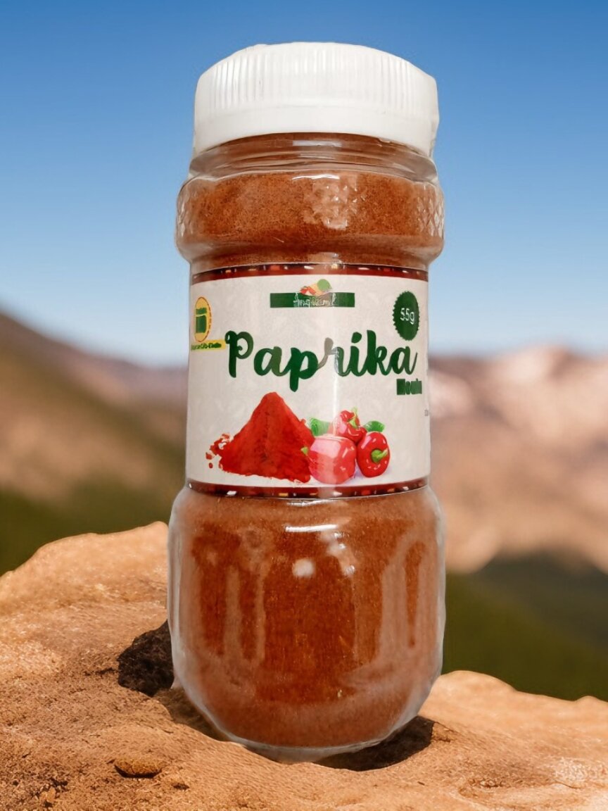 Poudre de paprika : Issue du piment doux, elle a une saveur douce et légèrement sucrée, souvent utilisée pour relever les plats avec une touche colorées