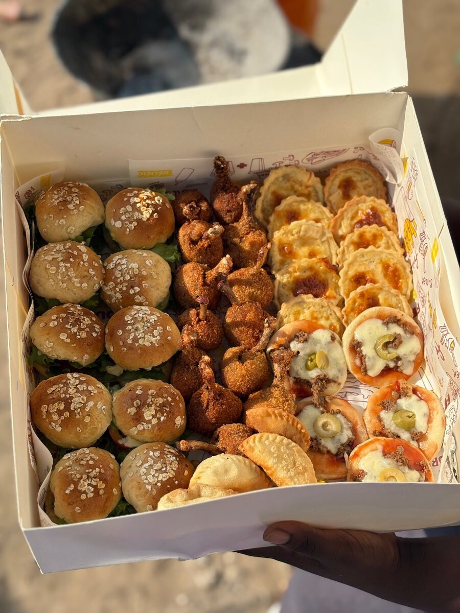 Grande boxe composé uniquement de mignardises salé Mini burger Mini pizza Mini quiche Ailerons