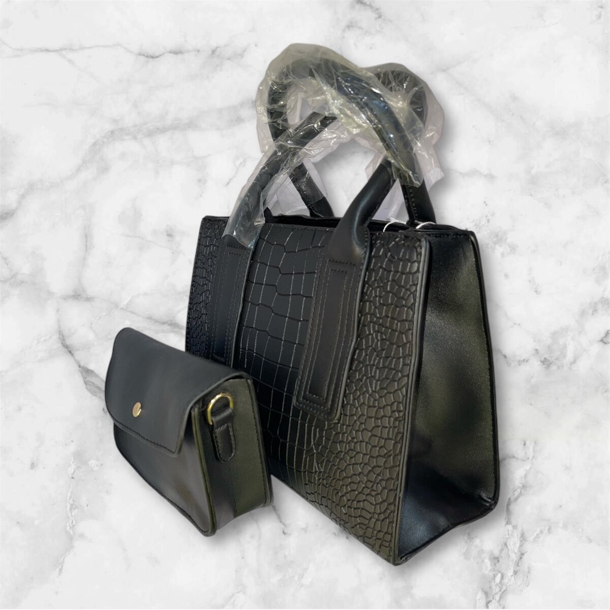 - Material: Textured black leather with a crocodile-skin pattern for a bold and luxurious look.