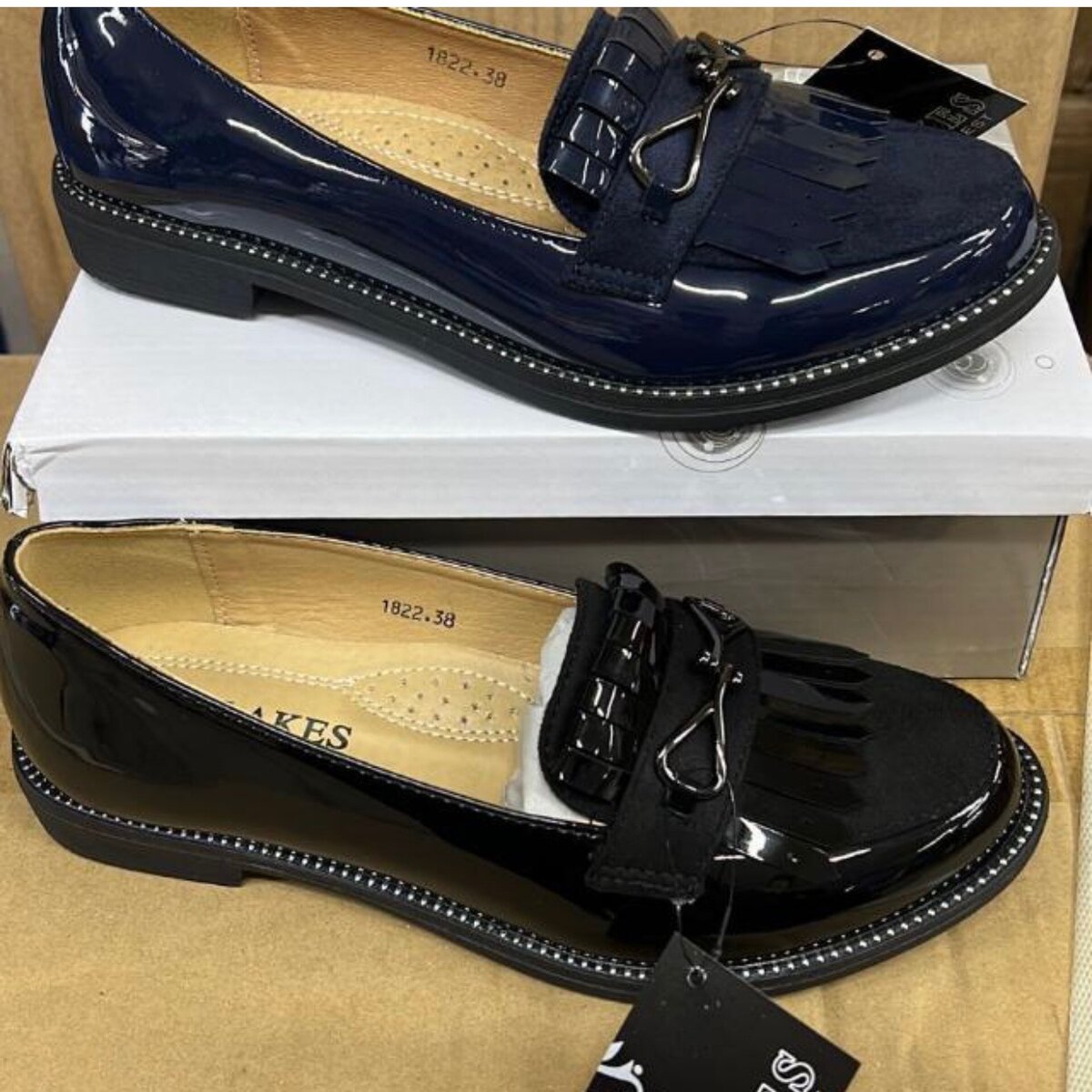 black patent leather loafers
