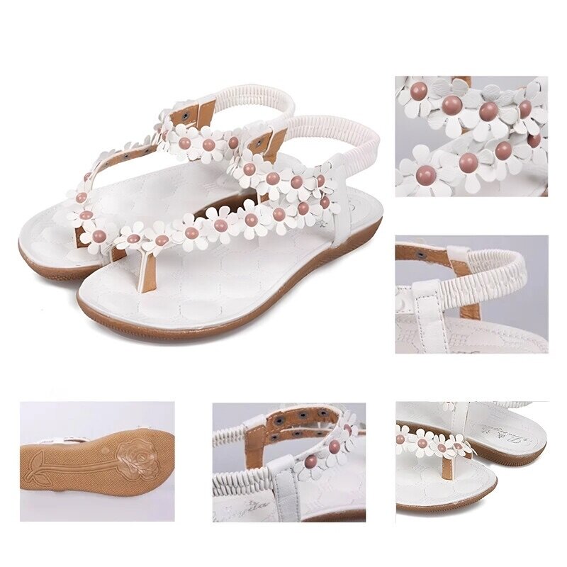 Ladies Shoes Sandals Toe Flowers Casual Flat Shoes Sandals