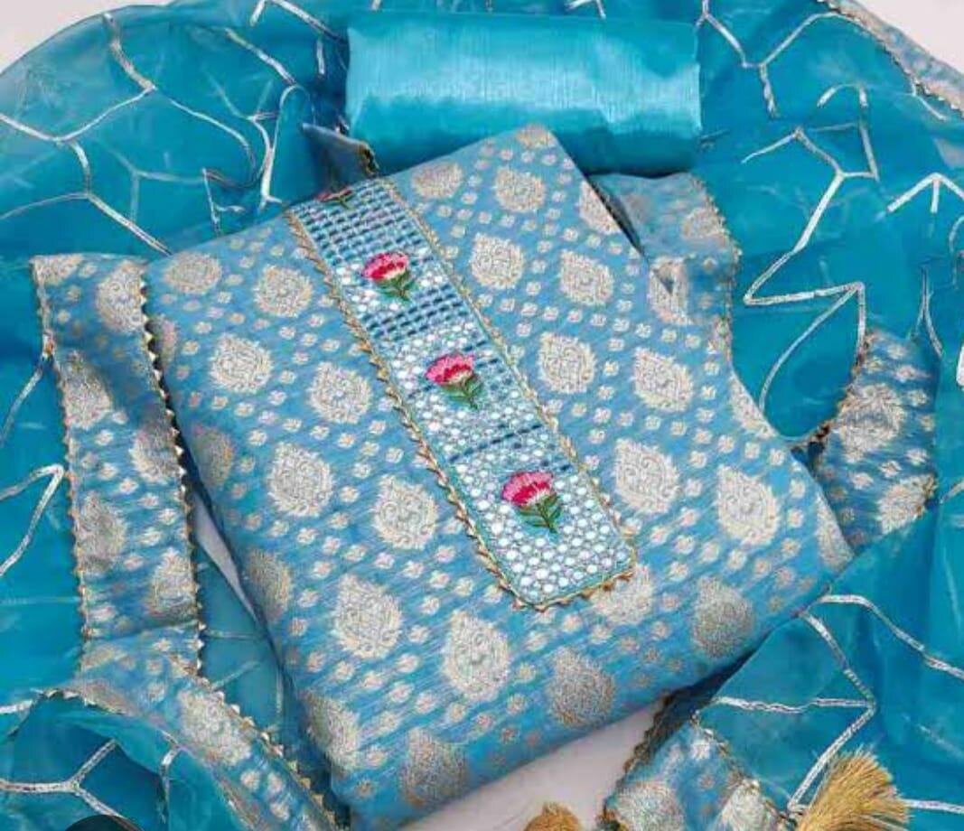 5 Pcs women's unstitched crikle chiffon Embroidered suit