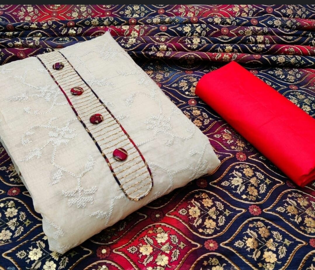 5 Pcs women's unstitched crikle chiffon Embroidered suit