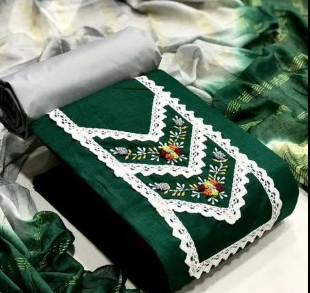 Cotton lawn embroided 3 pc Dc free