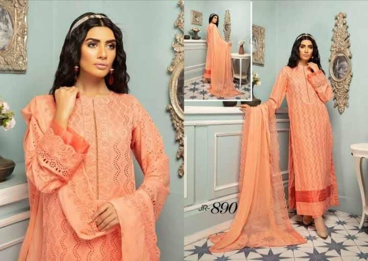 Embroidered Organza Women's Suit Set-3 Pcs in peach