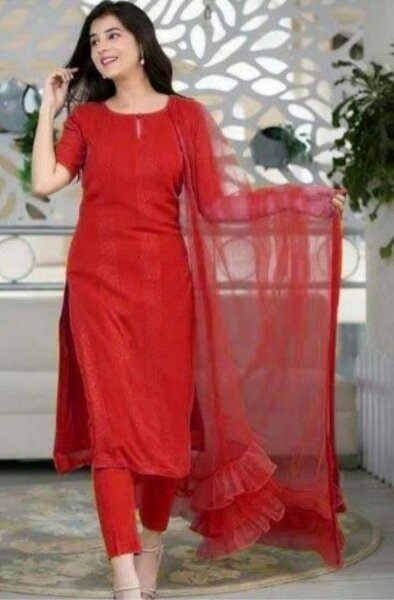3 PCs women's Unstitched Karan silk plain suit