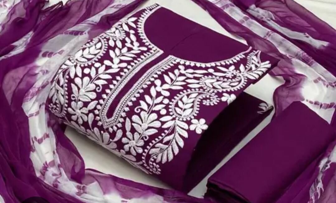 Beautiful embroidery khadar unstitched dress