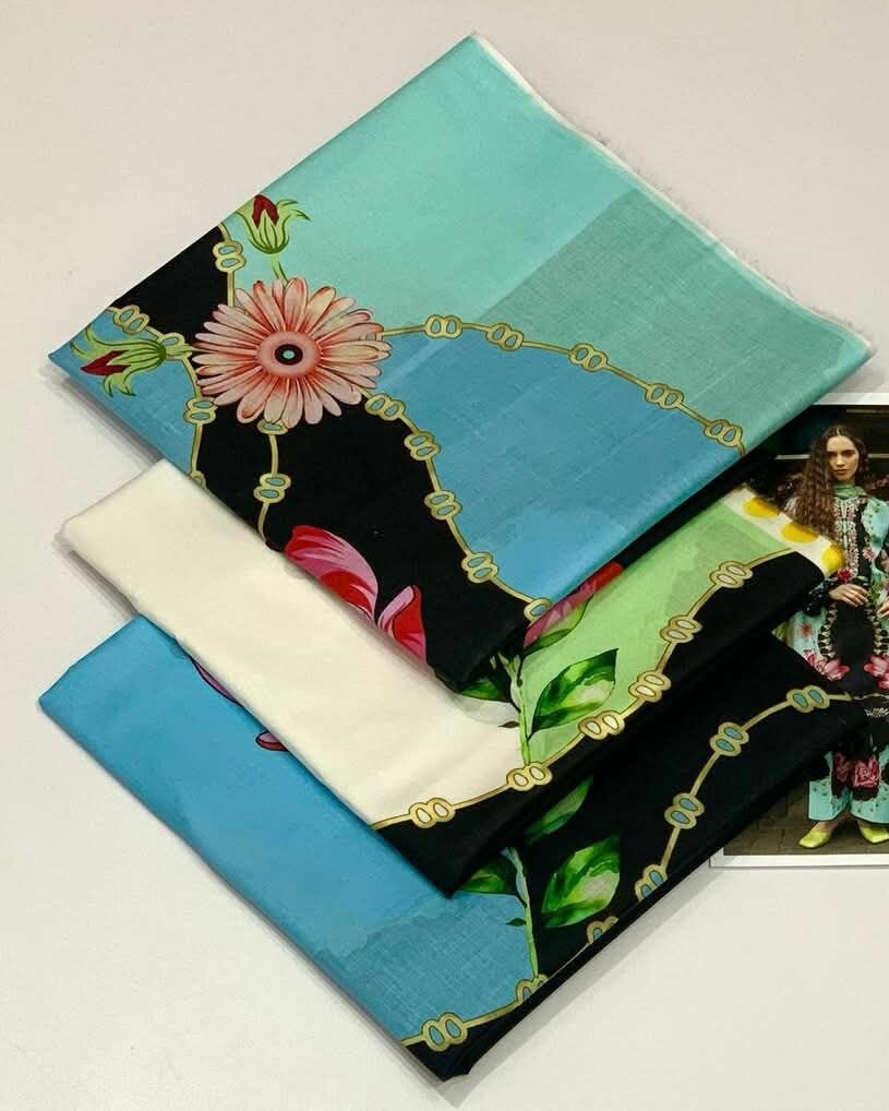 Printed 3pc Lawn Collection Fabric Lawn 90/70 Digital Printed All Over Lawn shirt Printed same Lawn Trouser Digital Printed Lawn Duppata Stuff N Colors Garenty Beautiful Color's Scheme Outclass Fabric.