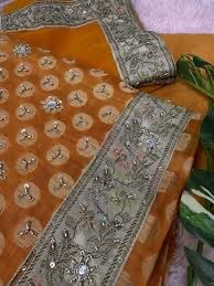Stitched organza embroidered suit