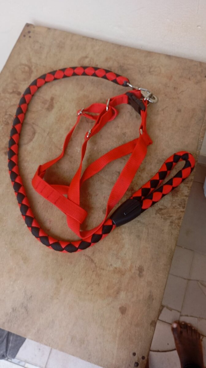Laisse pour chien rouge et noire, idéale pour la promenade quotidienne. Fabriquée en matériaux durables et confortable pour une prise en main facile. Parfaite pour les sorties en plein air avec votre compagnon à quatre pattes. L'accessoire de choix pour le confort et la sécurité de votre chien.
