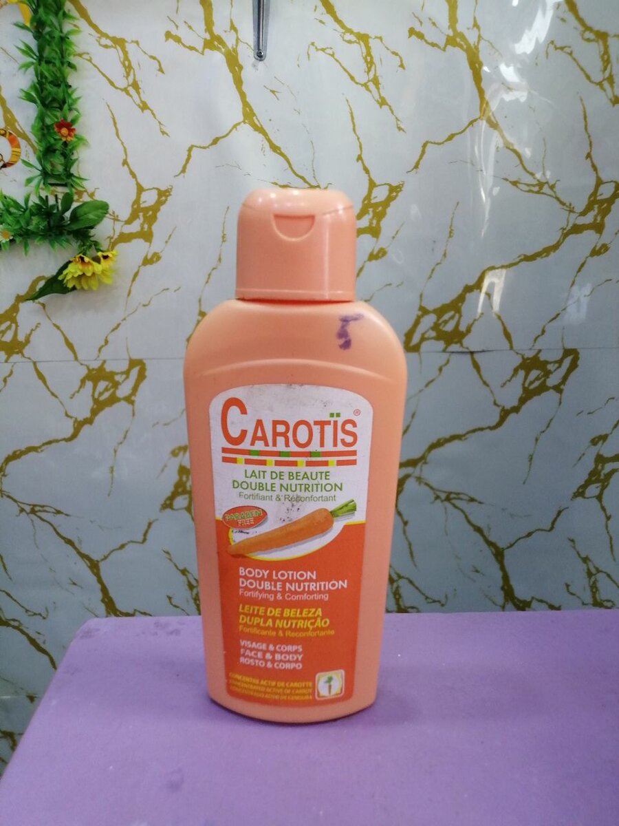 Découvrez notre lait corporel "Carotis" pour une double nutrition de la peau. Enrichi en carotte, il hydrate et adoucit votre peau.
