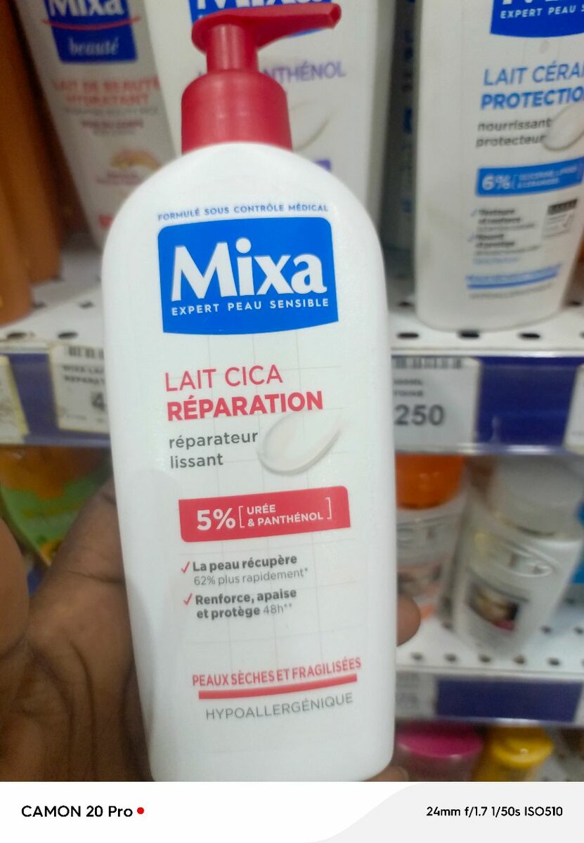 Découvrez le lait réparateur Mixa pour peau sensible. Enrichi de 5% d'urée et panthénol, il hydrate et apaise les peaux sèches. Idéal pour une utilisation quotidienne pour renforcer et adoucir votre peau délicate.