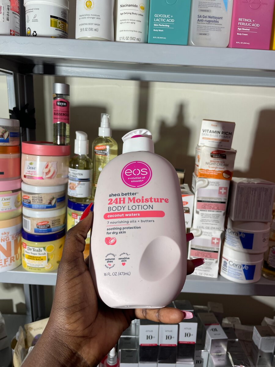 Découvrez le lait corporel EOS Moisture au beurre de coco. Hydrate et nourrit la peau. Parfait pour les peaux sèches.