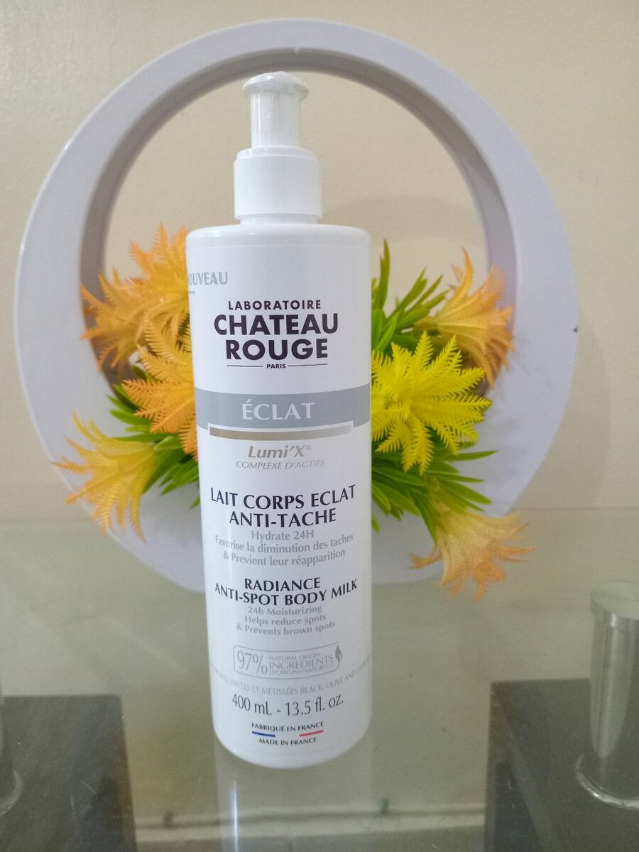 Illuminez votre peau avec le lait corporel Château Rouge. Formule anti-taches pour une peau radieuse et hydratée. Parfait pour une utilisation quotidienne.