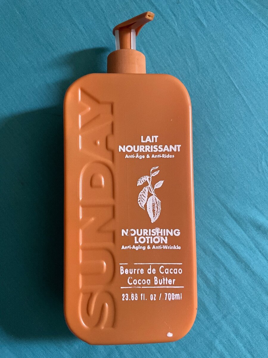 Le lait corps nourrissant Sunday est un soin corporel hydratant et anti âge,grâce à sa contenance en beurre de cacao.