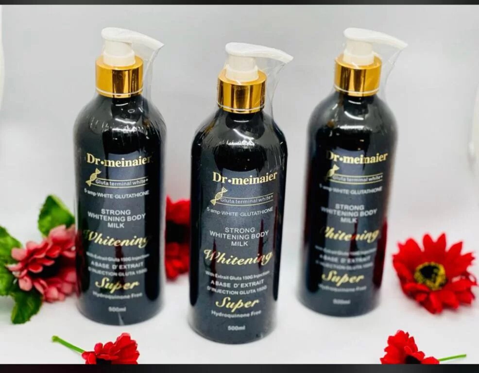 Dr Meinaier Strong Blanchissante Lotion : Une lotion corporelle blanchissante qui éclaircit efficacement, raffermit, spécialement formulée pour améliorer la texture et le tonus de la peau. Infusé d'huiles naturelles qui laissent la peau lumineuse, souple et éclatante. Cette lotion vous inspire à découvrir à quel point vous êtes belle car elle sublime votre teint.