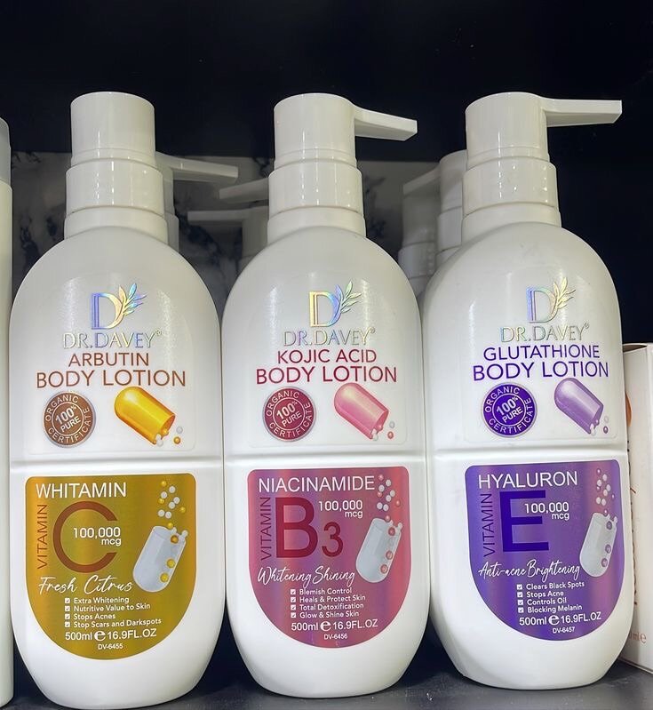 La Dr. Davey Glutathione Body Lotion hydrate, éclaircit la peau et réduit les taches noires. Grâce au glutathion, à la vitamine E et à l'acide hyaluronique, elle unifie le teint et donne un éclat naturel .