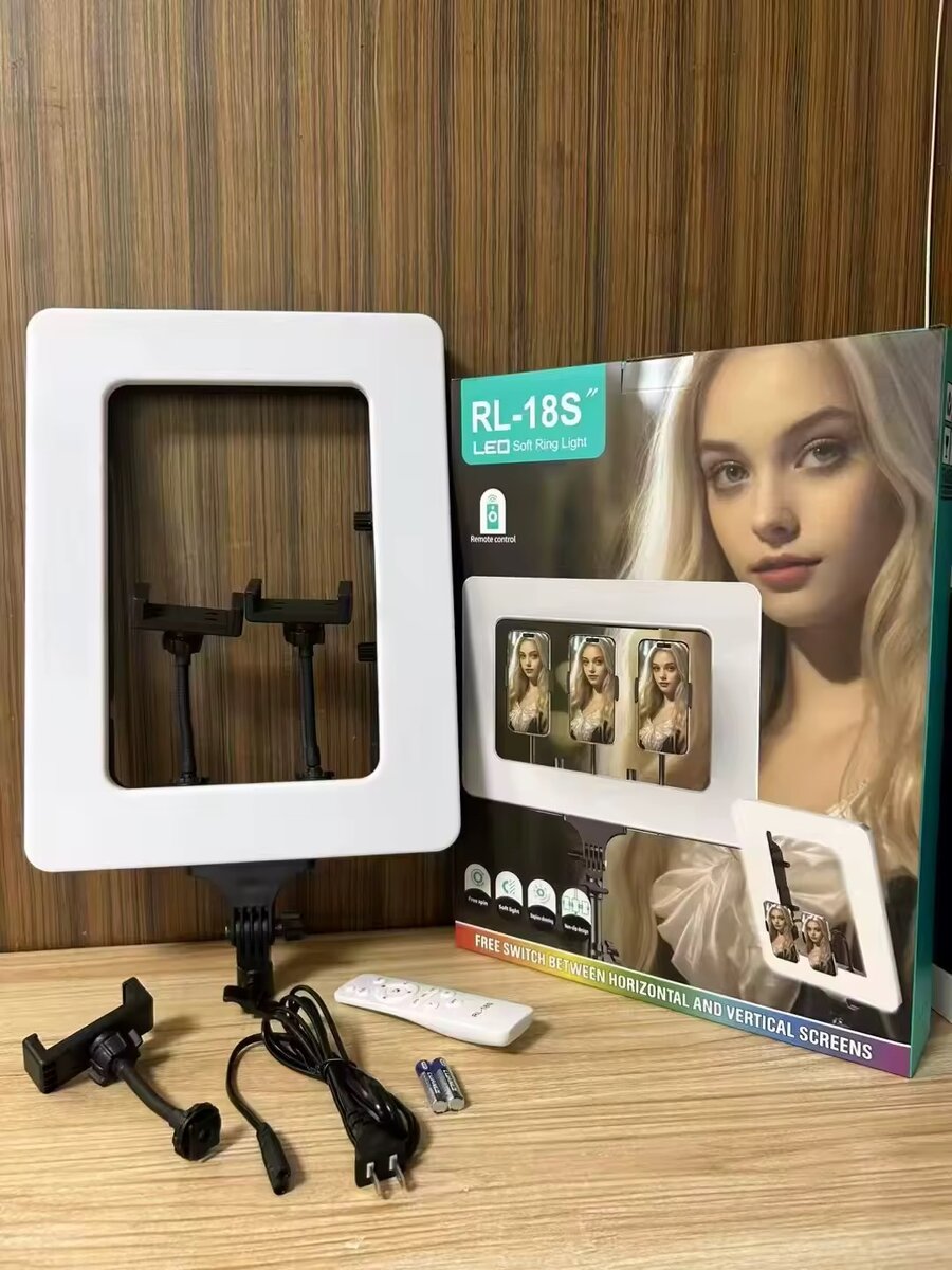 Éclairage LED carré de 18 pouces pour selfies, maquillage et streaming. Fonctionne avec télécommande, 3 couleurs de lumière et support pour téléphone. Parfait pour un éclairage professionnel à domicile.