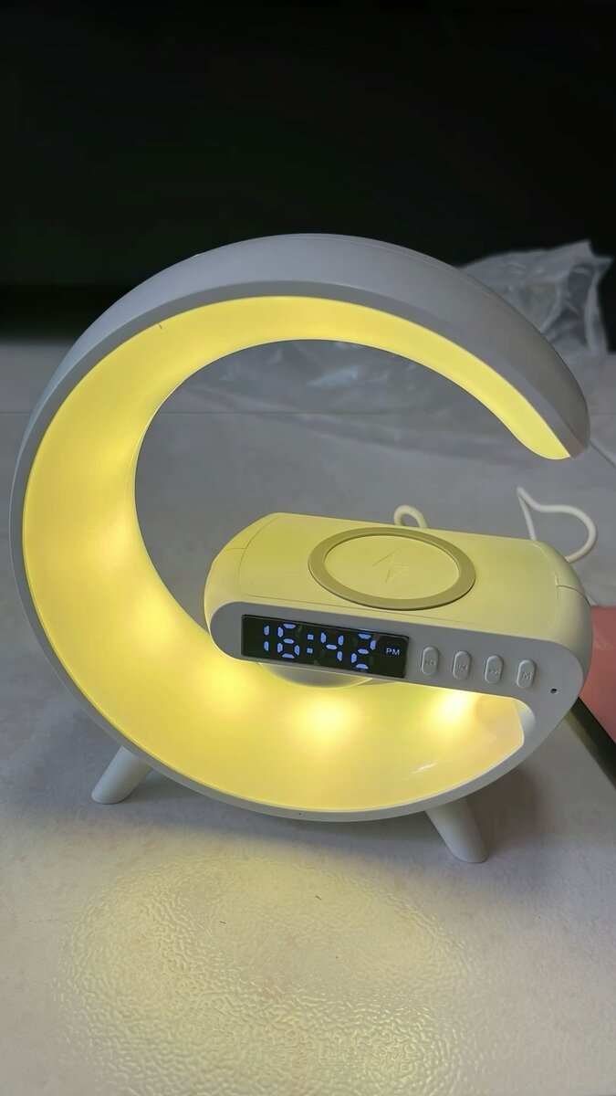 Découvrez la lampe LED multifonction avec enceinte Bluetooth et chargeur sans fil intégré. Design moderne en G, parfait pour illuminer et dynamiser vos soirées. Connectez votre musique facilement via Bluetooth, tout en rechargeant votre smartphone. Idéale pour le salon ou la chambre, elle offre une ambiance unique et polyvalente.