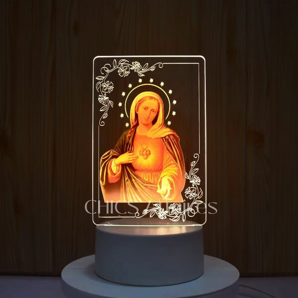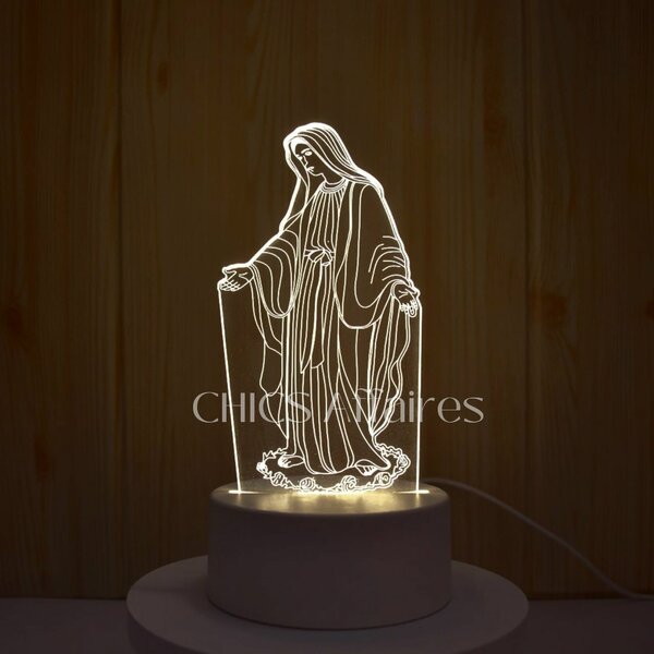 Lampe LED apaisante représentant la Vierge Marie, parfaite pour créer une ambiance sereine à la maison ou comme veilleuse. Idéale pour la méditation ou la prière.