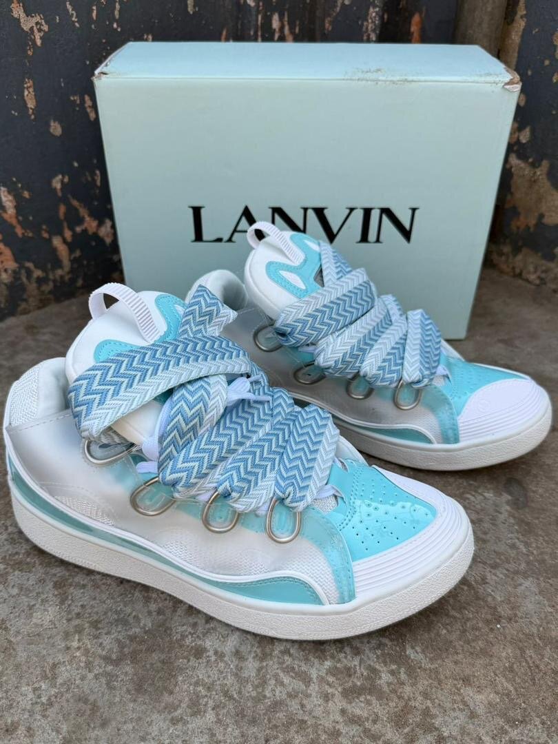 Discover the perfect blend of style and comfort with these Lanvin high-top sneakers. Featuring a chic blue and white design, they offer a modern twist on classic footwear. Ideal for casual outings, these sneakers promise durability and a fashion-forward look.