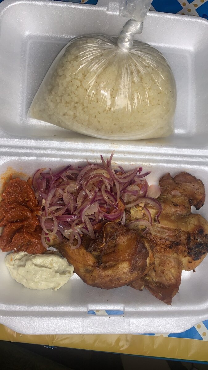 Dégustez un délicieux lapin grillé accompagné d attiéké .