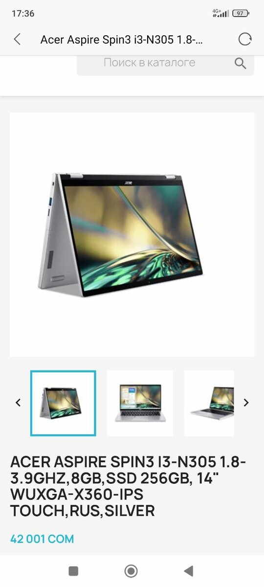 Ноутбук ACER intel Core CPU N305 8потоков , RAM 8гб, SSD 512гб, дисплей 14" дюймов