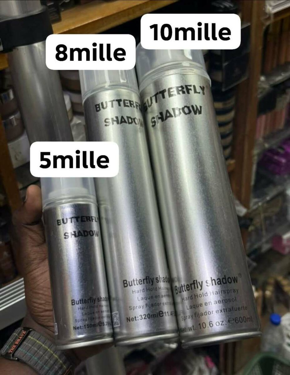 Fixez votre coiffure avec la laque Butterfly Shadow. Disponible en 5ml, 8ml et 10ml pour une tenue durable et un style impeccable. Idéale pour tous types de cheveux, elle offre une fixation forte sans résidus.