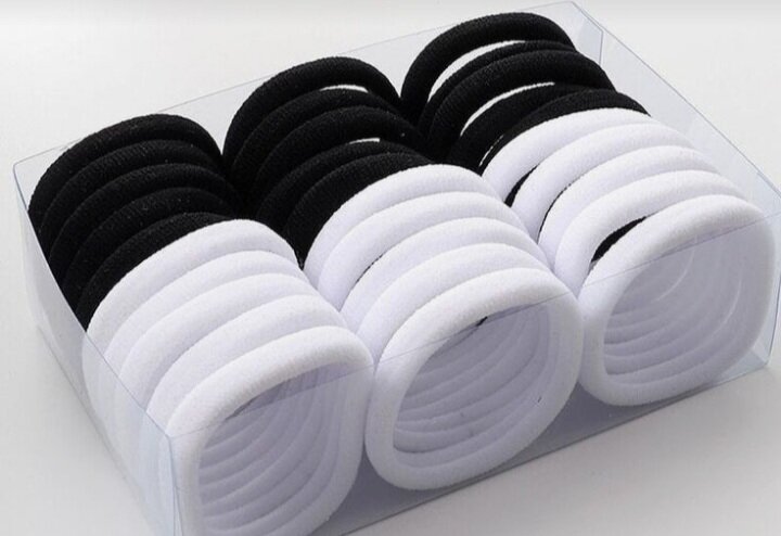 Lot de 24 élastiques à cheveux en noir et blanc. Parfaits pour tous types de coiffures, ces élastiques sont doux et solides, idéaux pour un usage quotidien. Conviennent à tous les types de cheveux et évitent les tiraillements.