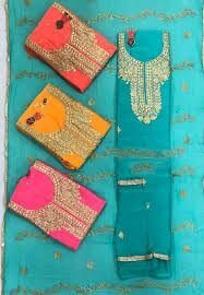 5 Pcs women's unstitched crikle chiffon Embroidered suit