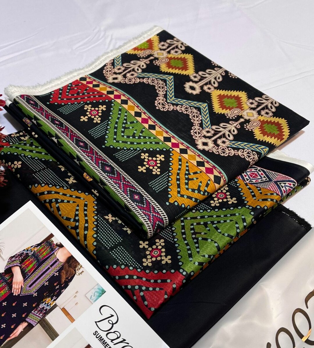 Digital Printed Lawn Shirt, Digital Printed Lawn Duppata, Plain dyed trouser