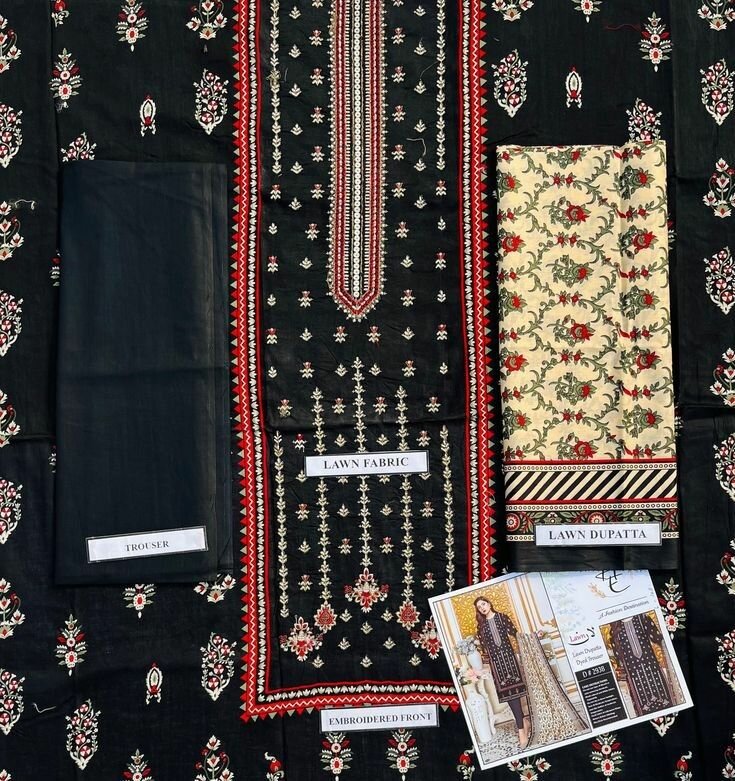 Lawn Embroidered Shirt, Lawn Plain Dyed Trouser, Lawn Digital Printed duppata, Available in all sizes