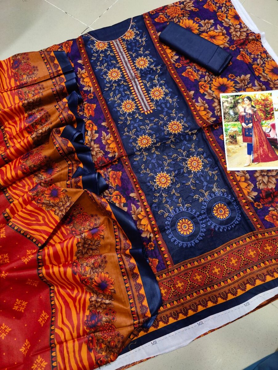 3 pcs women's Lawn unstitched Embroidered suit