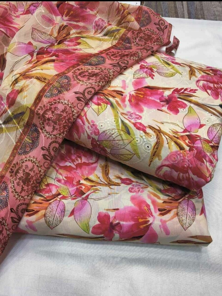 Chicken Lawn Emboidered Shirt Chicken Lawn Emboidered Dupata Lawn Printed Trouser