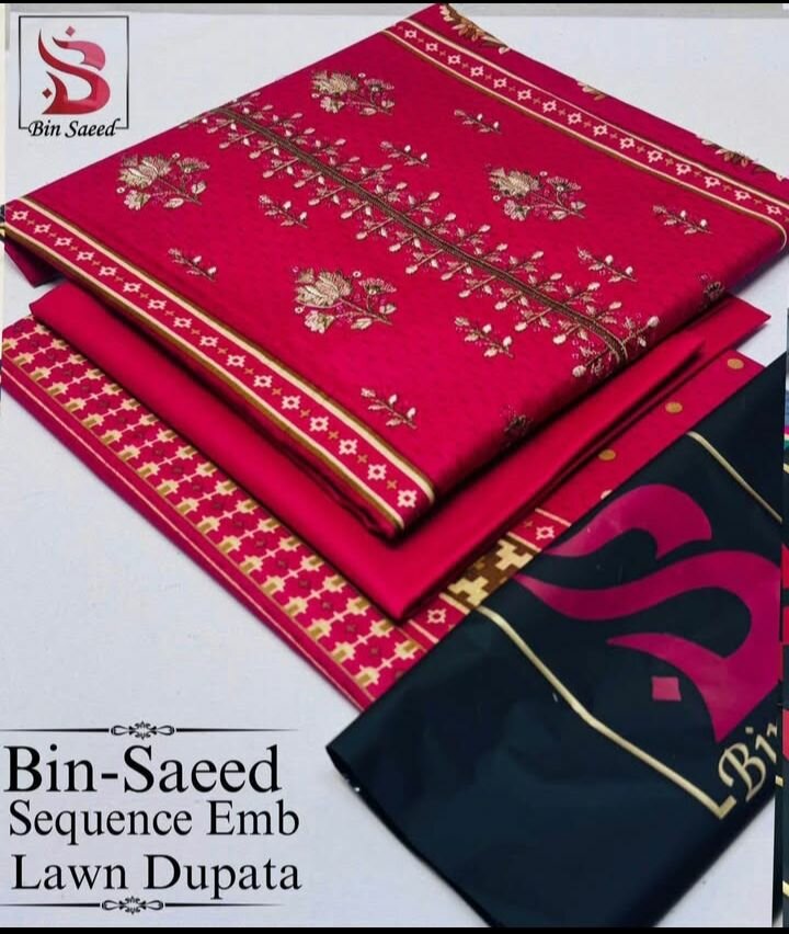Lawn Emboidered Shirt Lawn Emboidered Dupata Lawn Dyed Plain Trouser