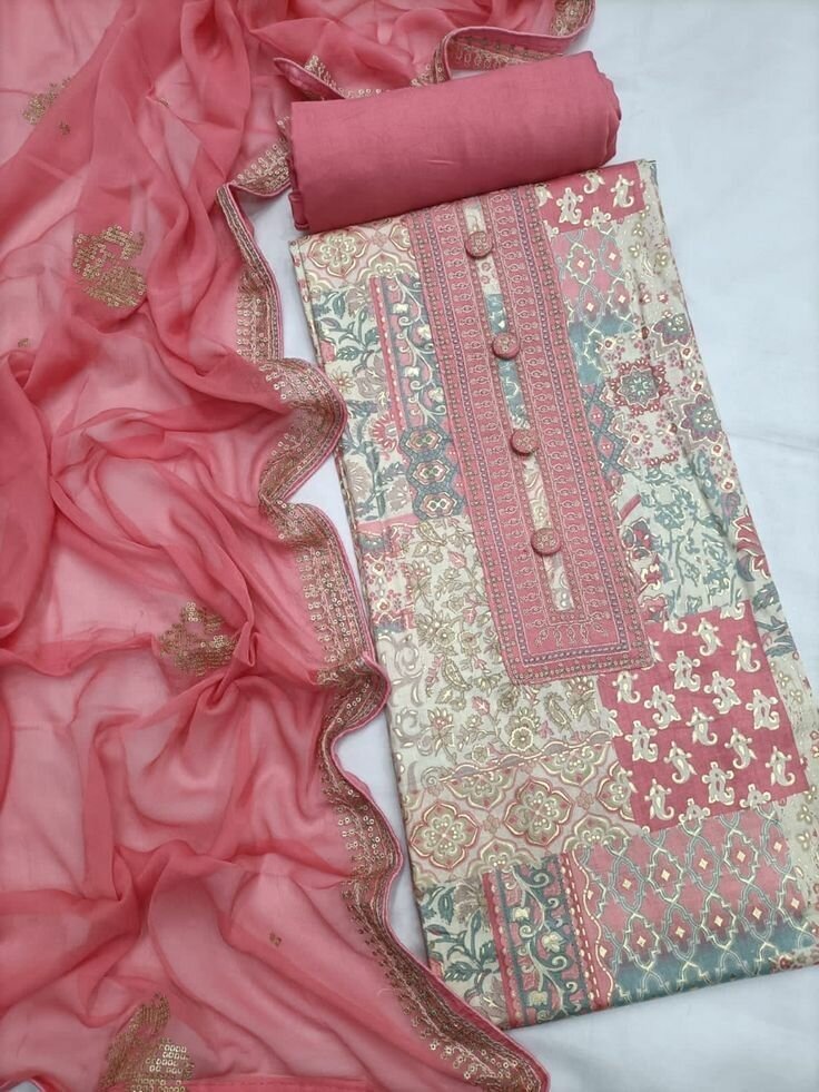 3pc organza suit with cotton silk