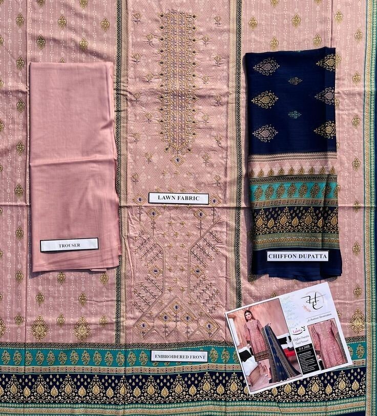 Lawn Embroidered Front Shirt Plain Dyed Lawn Trouser Clifton Printed Duppata