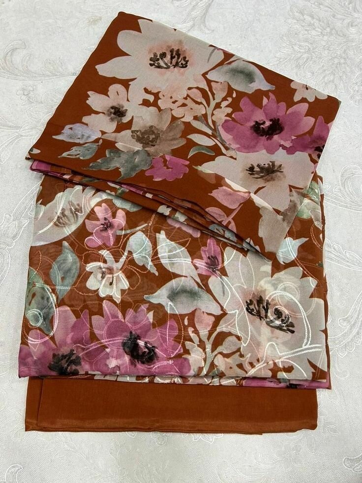 Digital Printed Lawn Shirt, Plain Dyed LawnTrouser Digital Printed Lawn Duppata
