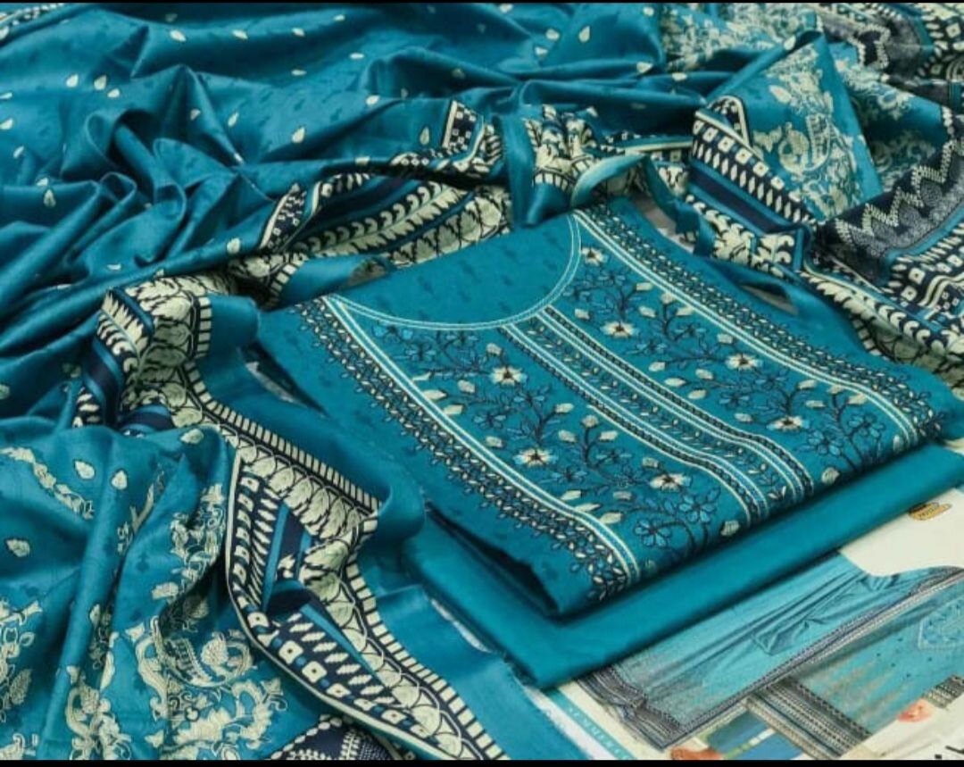 Beautiful 3pc unstitched embroidery dress+ patches