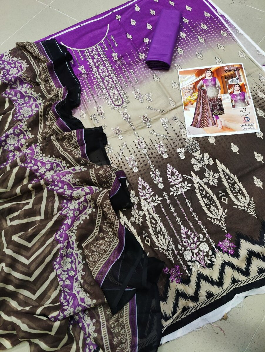 Lawn Embroidered Shirt, Lawn Plain Dyed Trouser, Lawn Printed Duppata, Available in all sizes