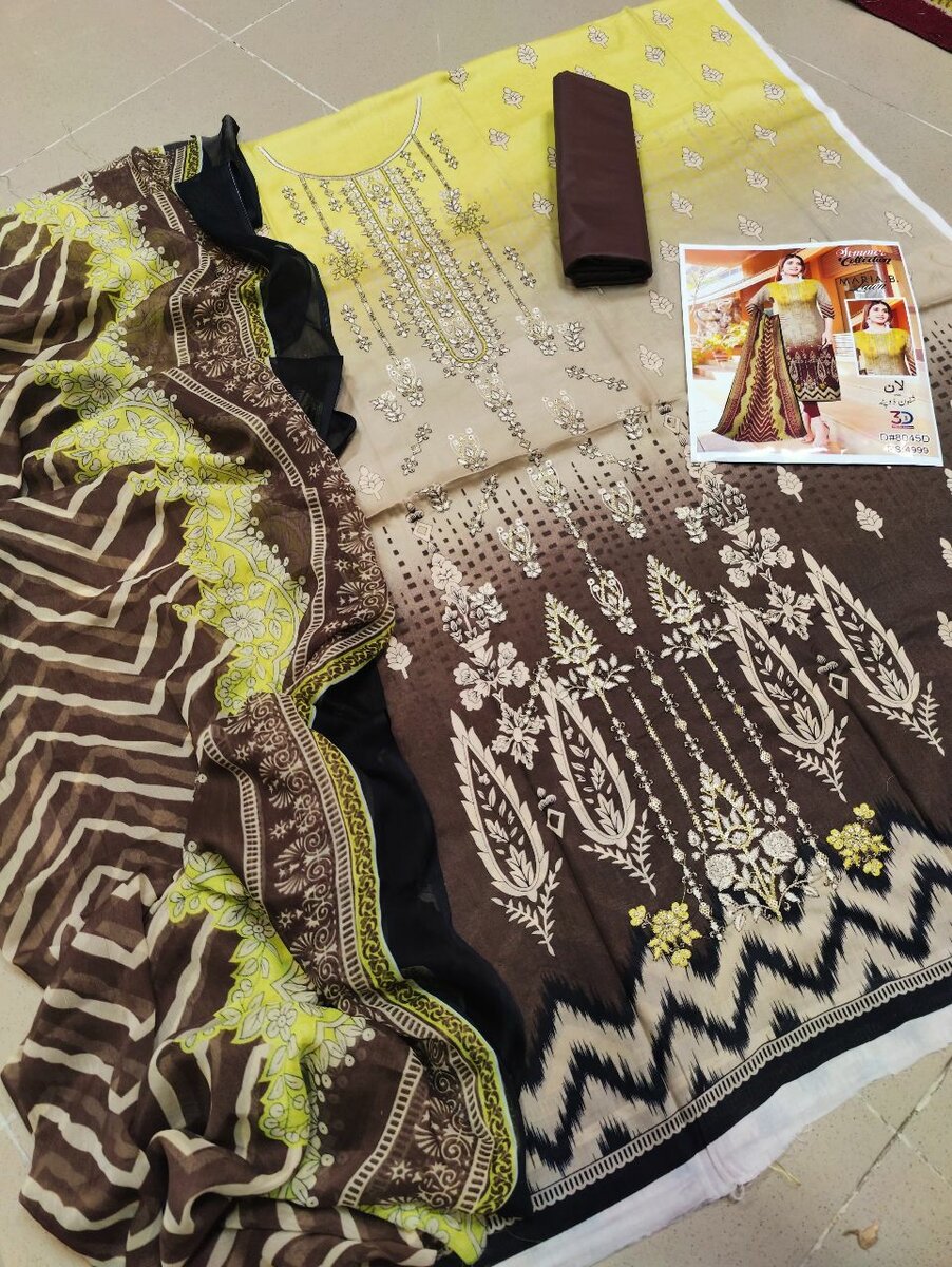Lawn Embroidered Shirt, Lawn Digital Printed Duppata, Lawn Plain Dyed Trouser... Available in all sizes